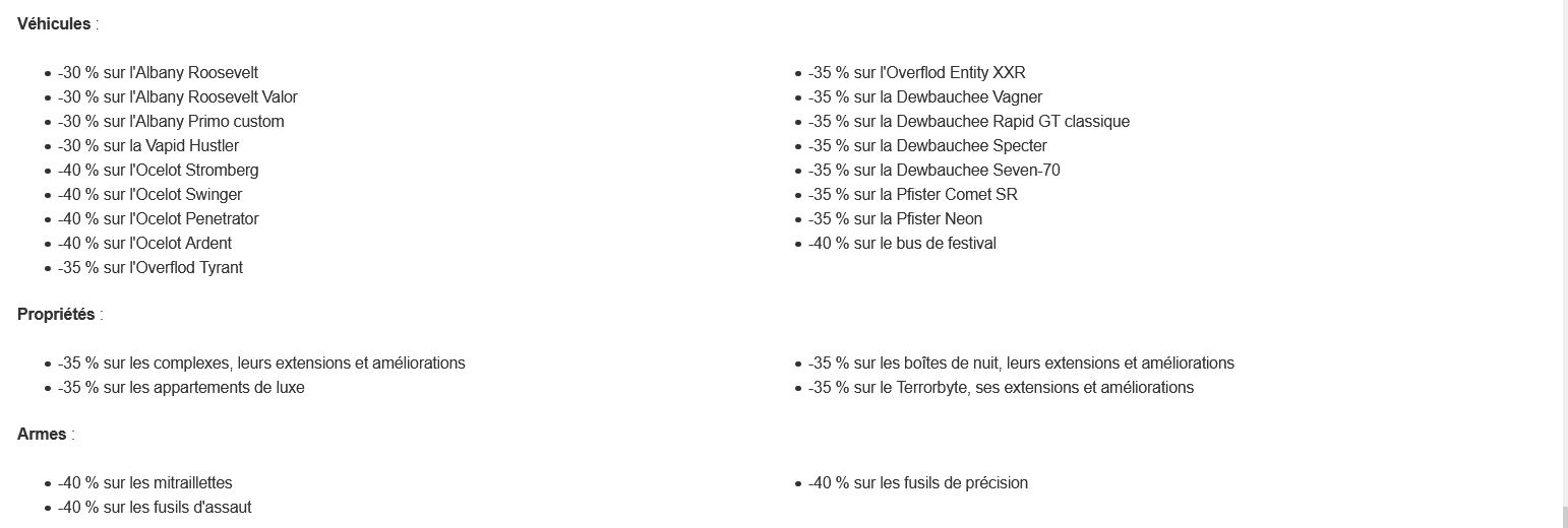 Comme chaque semaine Rockstar propose également des réduction sur divers éléments. Cette semaine c’est bien sûr les vêtements de la Saint-Valentin qui sont à -30% sans oublier des