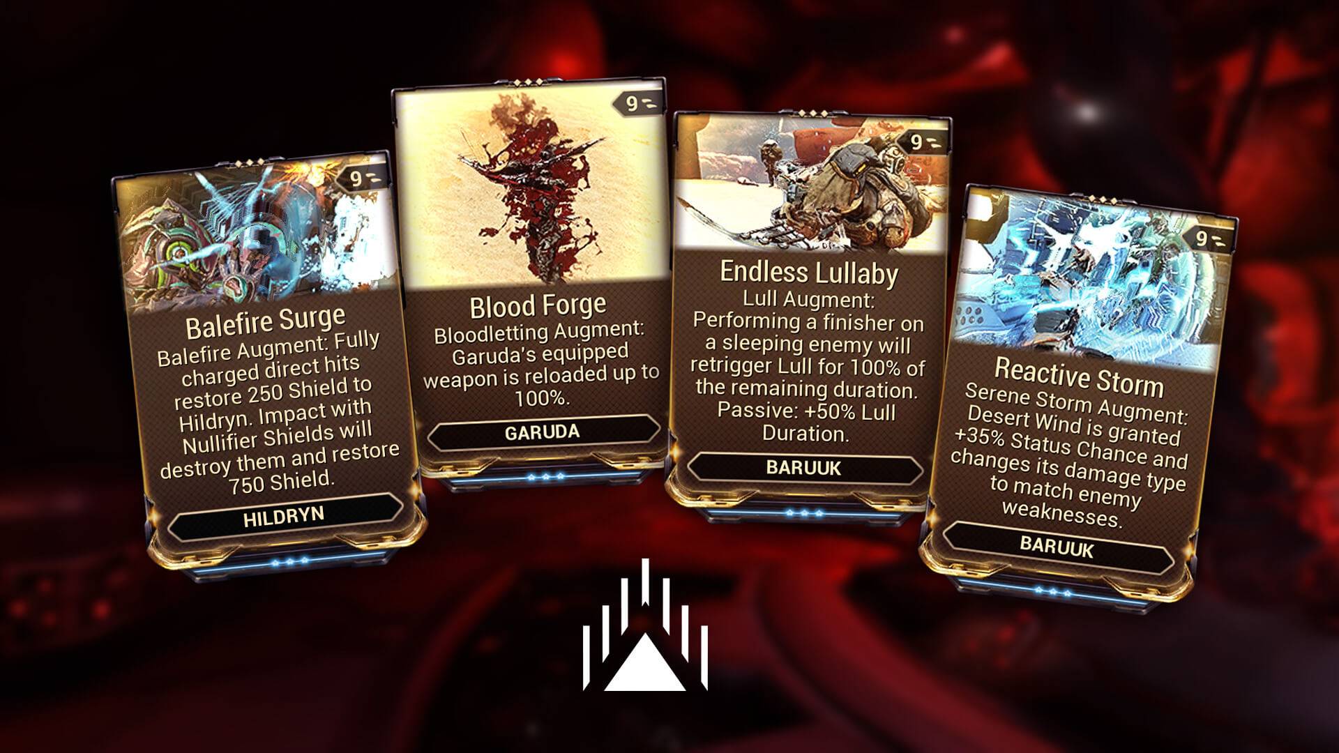 Les développeurs profitent de la toute dernière mise à jour pour ajouter 4 nouveaux mods d’augmentation pour : Garuda, Hildryn, et Baruuk.