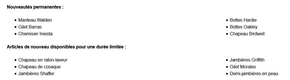 Mise à jour du catalogue Wheeler, Rawson & Co. sur Red Dead Online