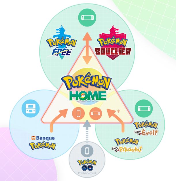 Pokémon et Poké Transfert seront disponibles sans frais pendant un mois après la sortie de Pokémon HOME. Vous pourrez rassembler vos Pokémon en provenance des jeux de la série Pokémon grâce à Banque
