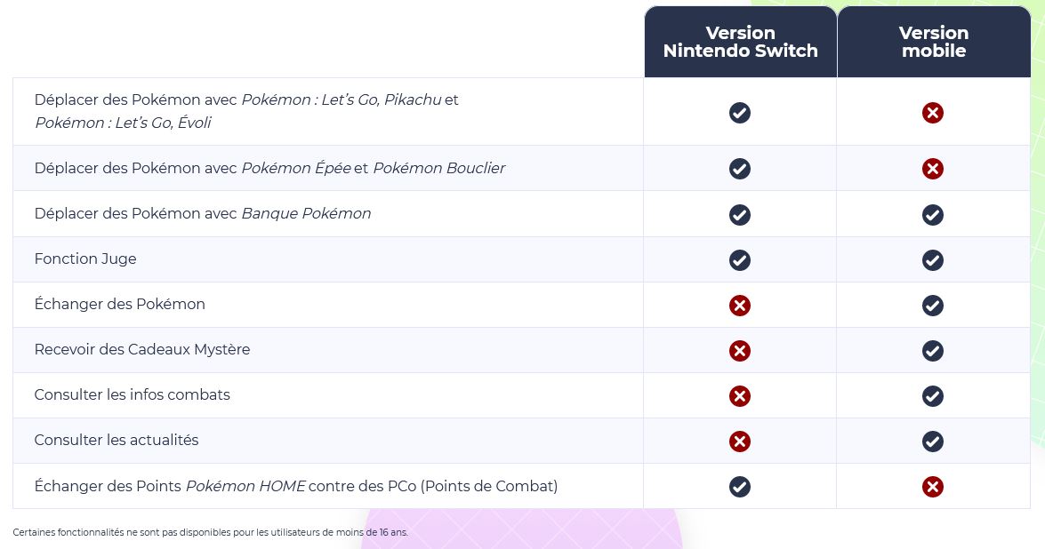 (échangeables contre des Points de Combats) seront également disponibles sur l’application. Retrouvez ci-dessus les différentes fonctionnalités disponibles sur les versions Nintendo