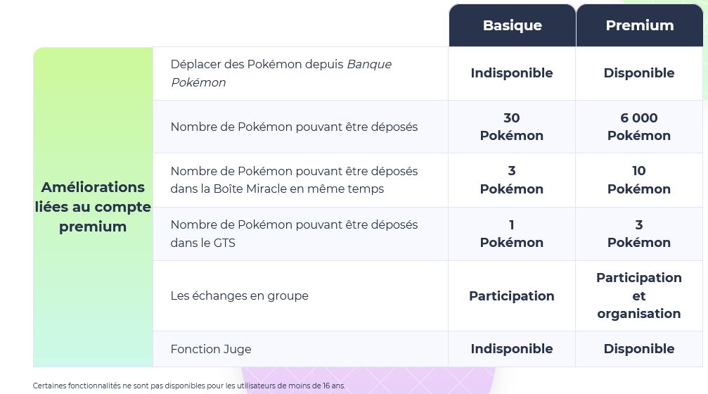 échanges Pokémon et les cadeaux mystère. D’autres fonctionnalités seront également disponibles pour les membres Premium du service. Il est également important de noter que Pokémon HOME sera également