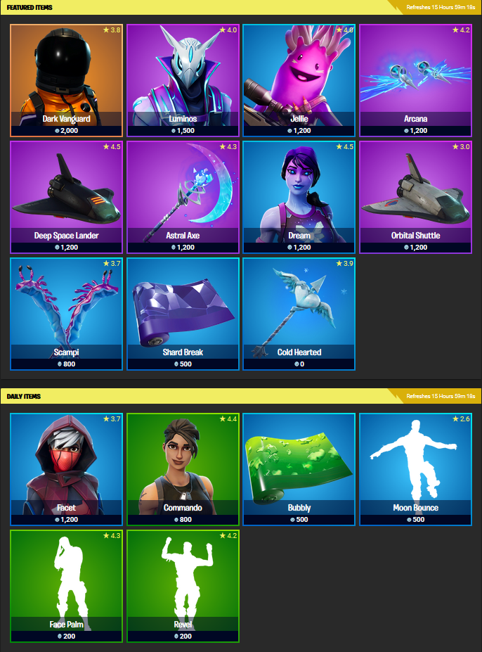 Comme vous pouvez le voir sur l’image, la boutique est toujours séparée en deux catégories : les objets du jour et les objets à la une. Les objets du jour ne sont