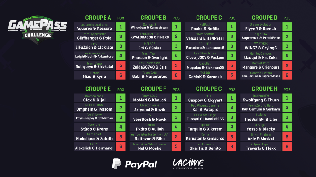 Classement de la phase de groupes du Game Pass Challenge (crédits : GPC)