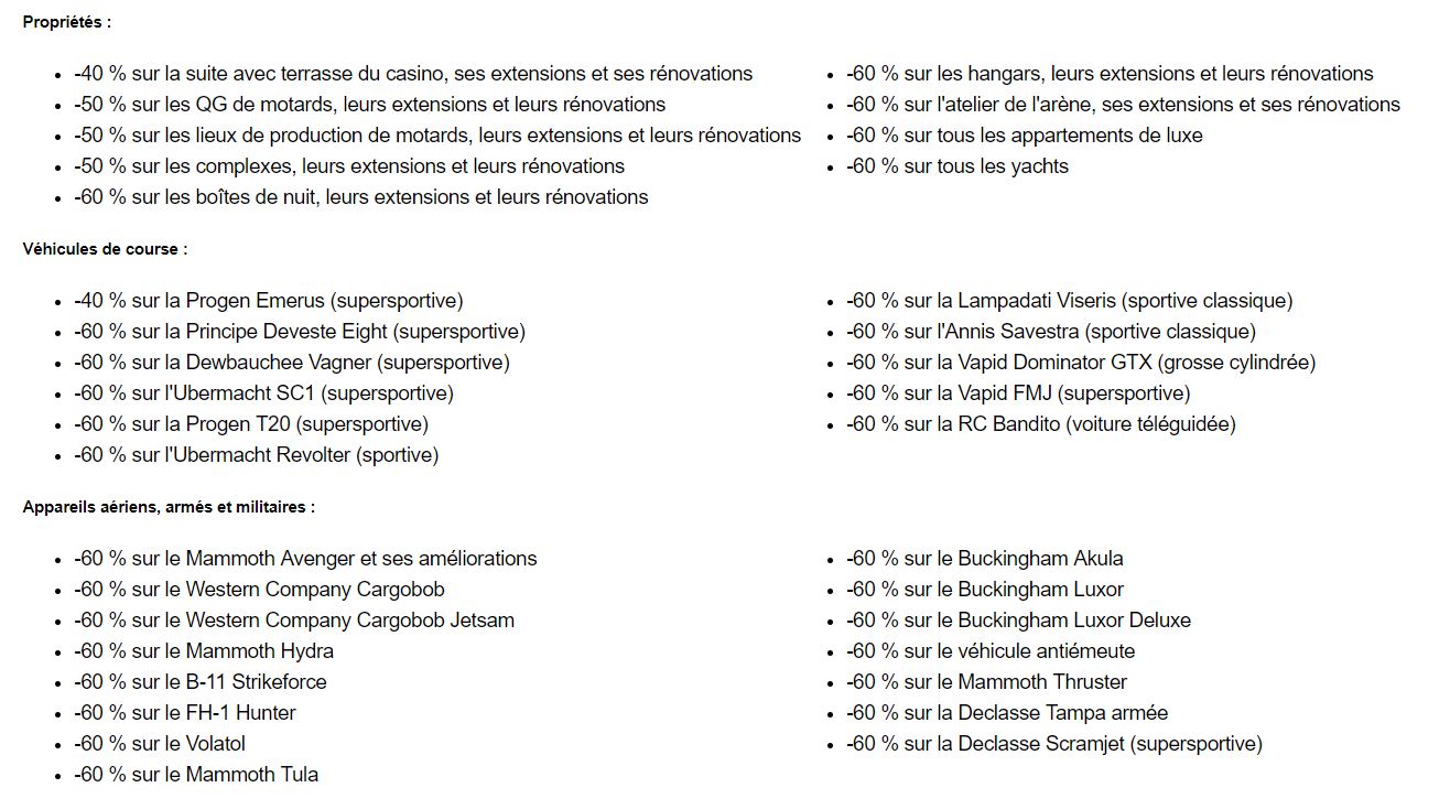 Les réductions de la semaine sur GTA Online (source : communiqué de presse)