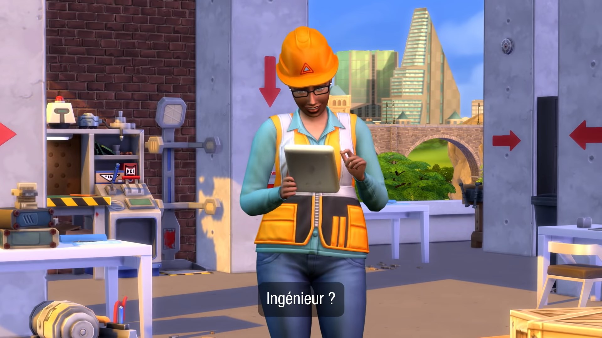 Le deuxième métier présenté est celui d’ingénieur. Là aussi, on imagine bien qu’il faudra obtenir un diplôme à la fac pour exercer. Difficile d’imaginer un Sim élaborer des plans de construction