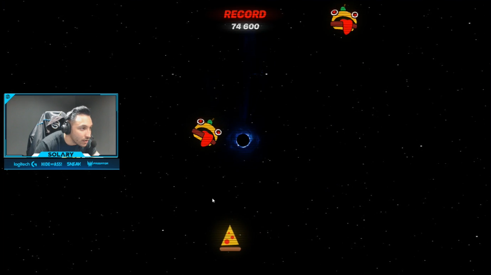 prmeière fois dans un jeu Nintendo. Ici, il vous permettra donc d’accéder à un Space Invaders version Fortnite, où le but est de détruire des burgers à l’aide d’une part de pizza, tout en effectuant