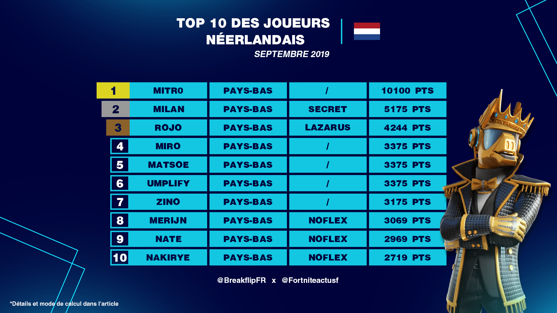Classement Fortnite des meilleurs joueurs du Pays Bas en septembre 2019