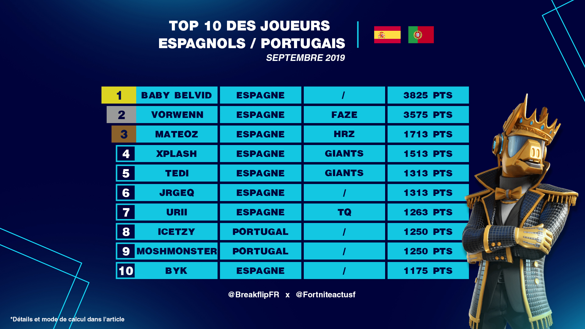 Classement Fortnite des meilleurs joueurs espagnols et portugais en septembre 2019