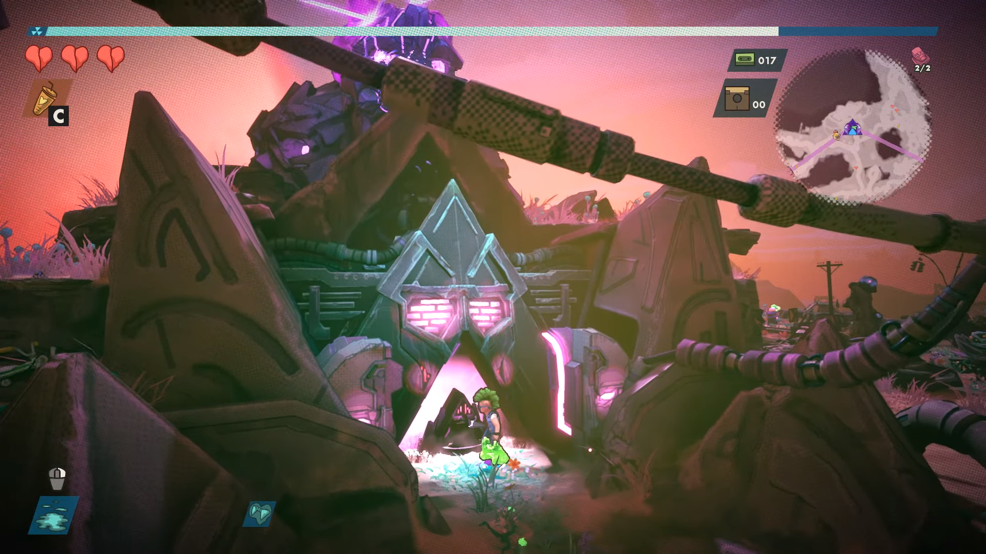 dans des espaces générés procéduralement pour trouver les respirateurs nécessaires à l’ouverture d’un souterrain, où se trouve le Boss de niveau qui, une fois battu, vous permettra l’accès à la zone