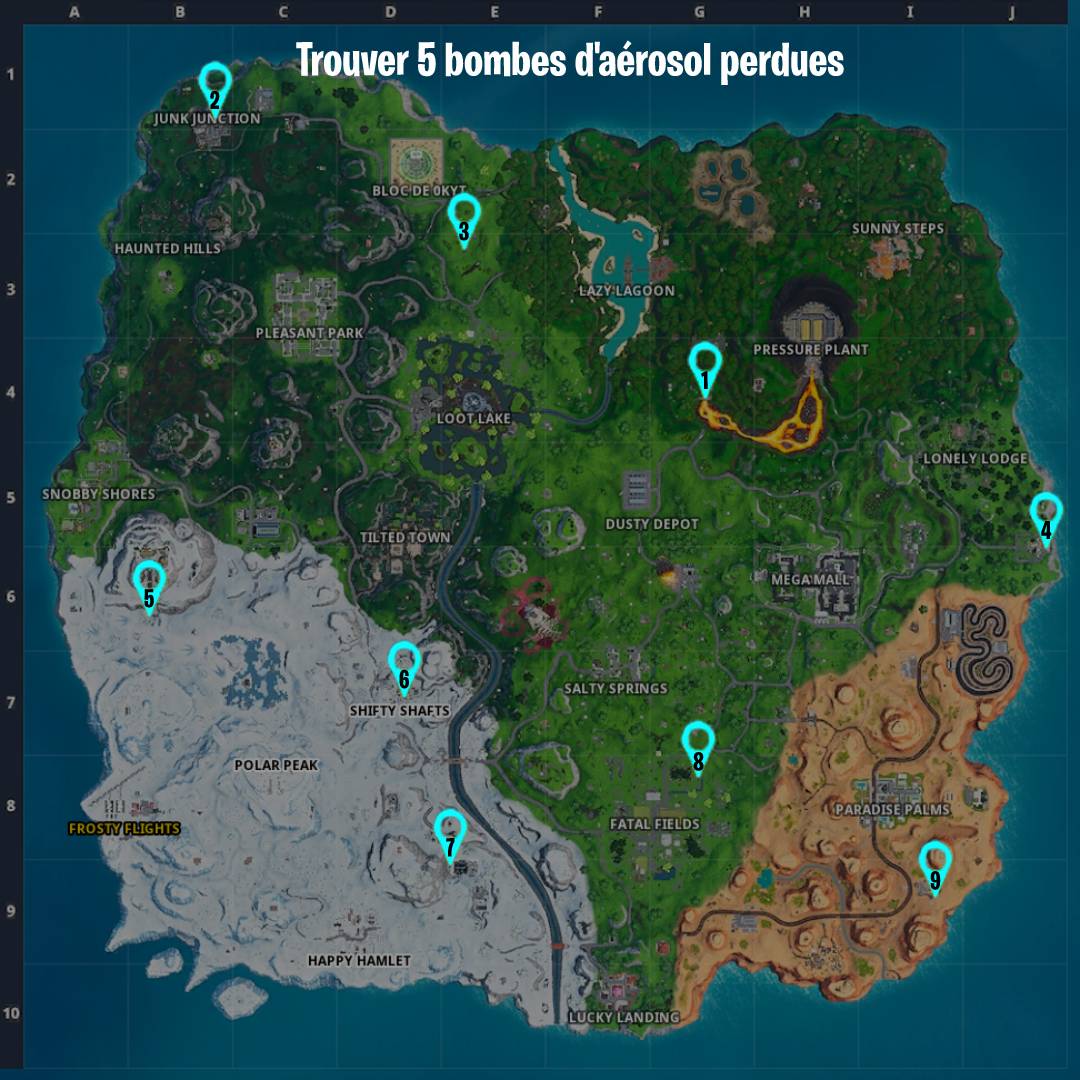Fortnite : Trouver les bombes d’aérosol perdues, défi Plomb et Peinture, saison 10