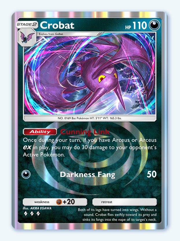 Cunning Link : Si Arceus ex est en jeu, Nostenfer peut infliger 30 dégâts supplémentaires chaque tour, ce qui permet d’accumuler une pression énorme sur l’adversaire sans dépenser