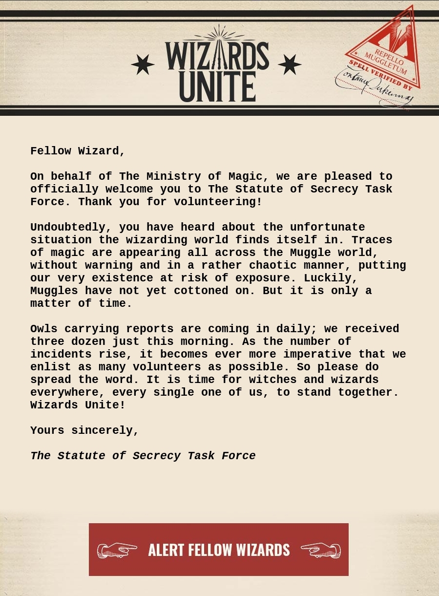 Si vous étiez inscrits à la newsletter du jeu Wizards Unite, vous avez probablement reçu un mail piquant votre