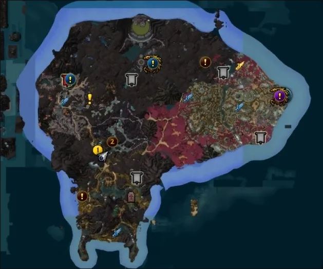 La répartition des points à capturer dans la zone (source : Wowhead)