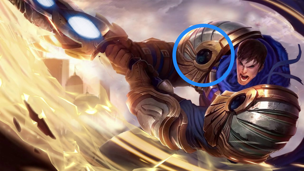 L’emblème détruit dans l’extrait correspondrait à un emblème de Demacia. On le retrouve par exemple sur les épaulettes de Garen dans son skin de base. Quant à la lumière, elle pourrait directement
