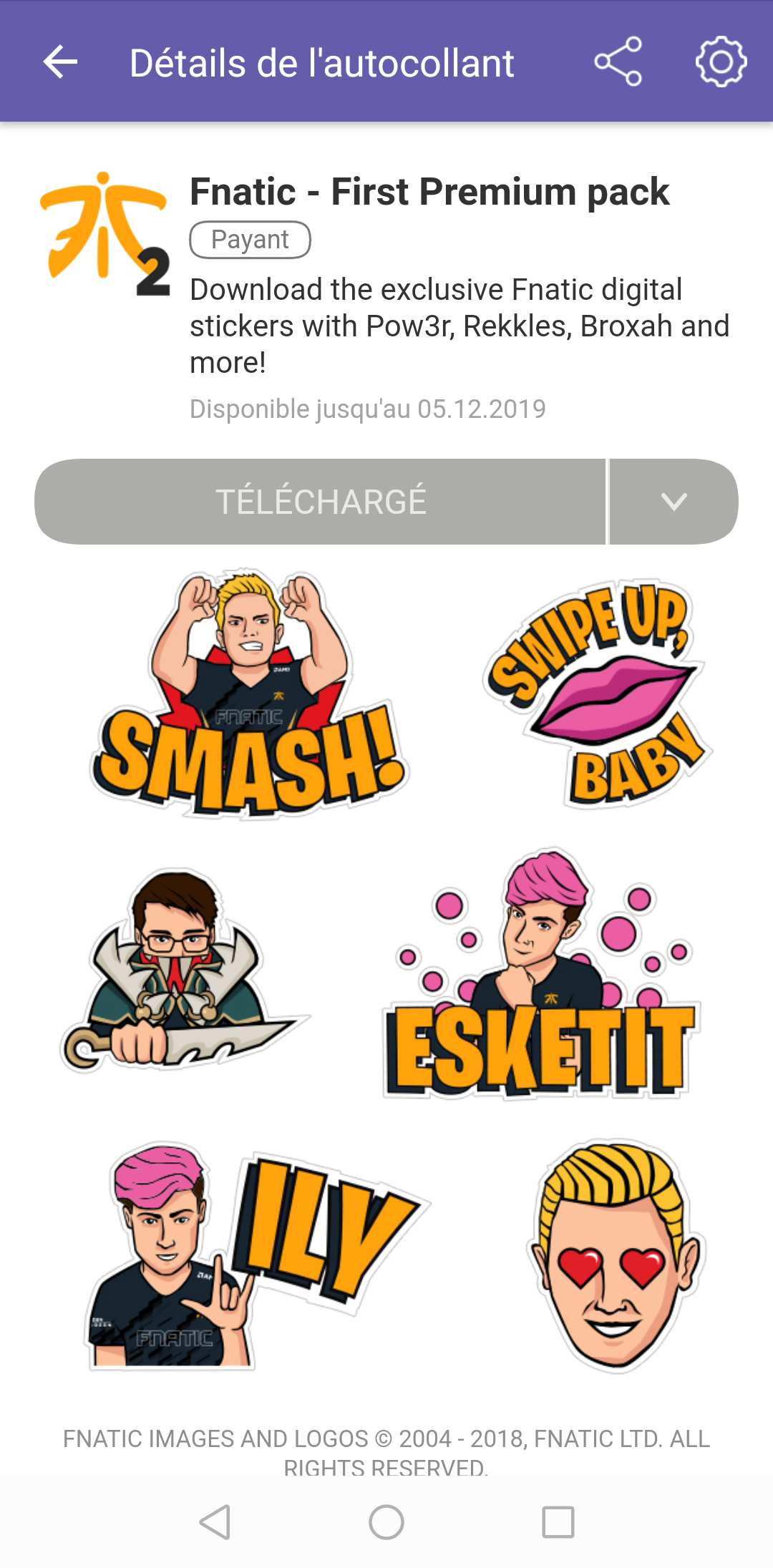 de plusieurs packs, parfois gratuits, tantôt payants (1€), à l’effigie de ses joueurs ou bien des références du club. Et à première vue, ces stickers sont bien spam…