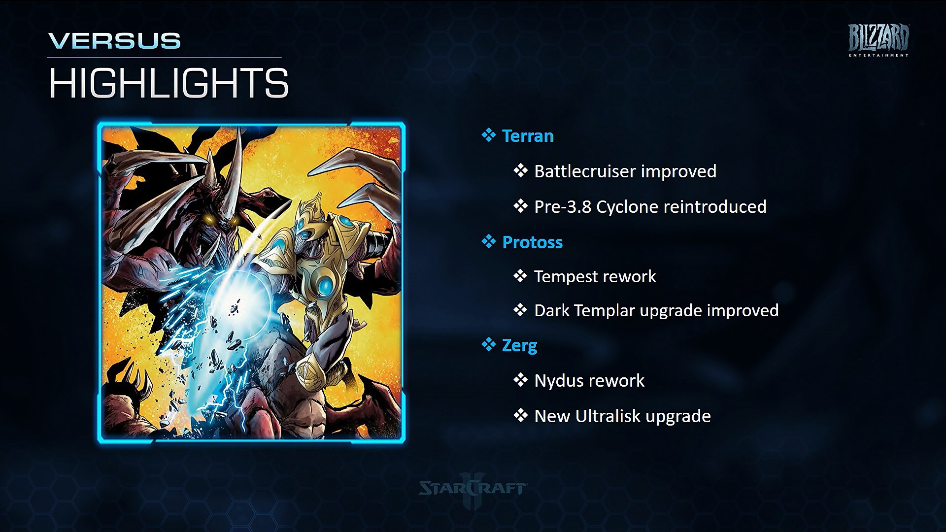 Concernant les équilibrages du mode versus multijoueur, Blizzard a mis l’accent sur les unités et les combats de fin de partie. Des ajustements seront également à prévoir pour chacune des trois