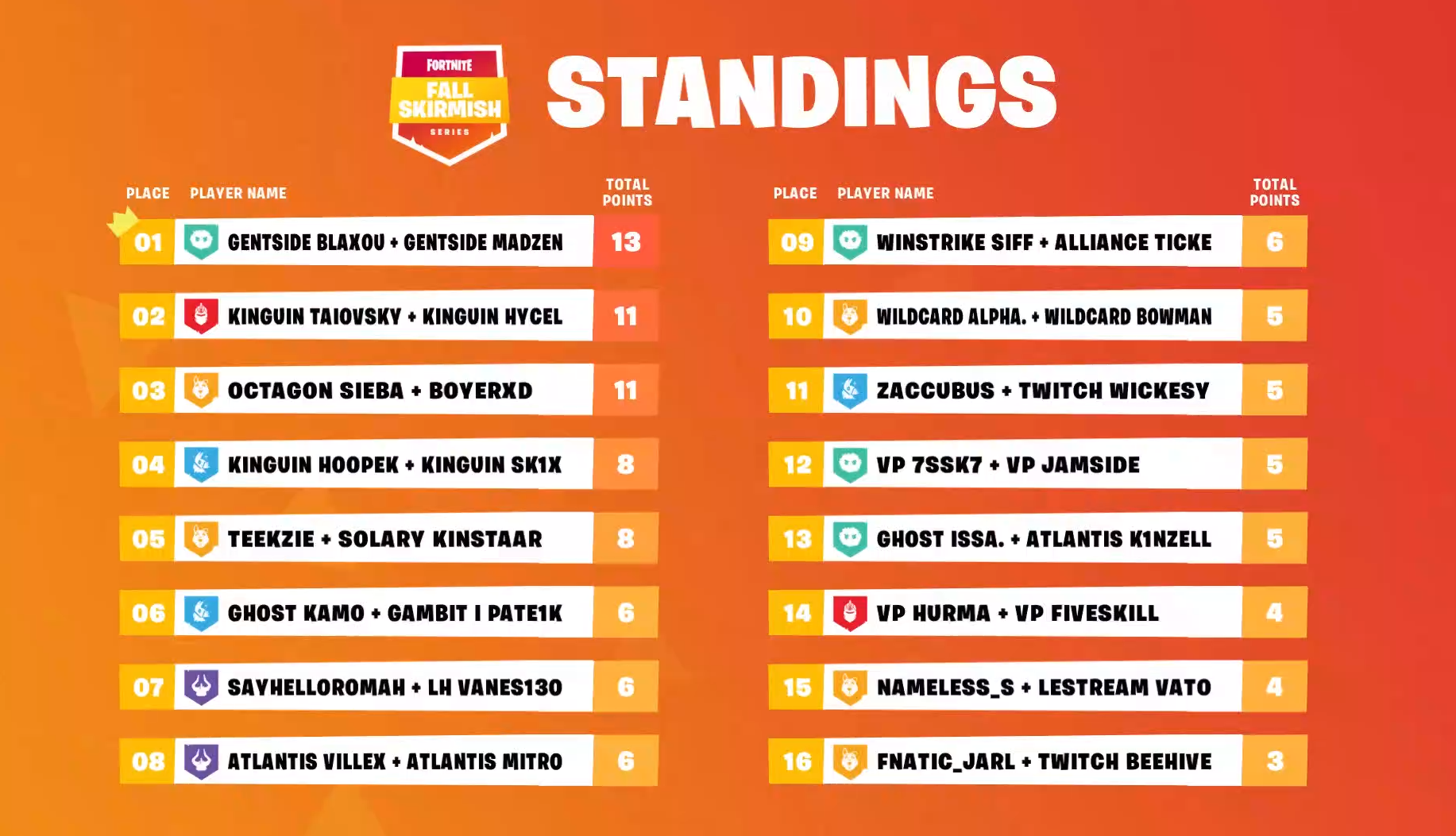 Fortnite : Fall Skirmish 5, joueurs, format, résultats et classement – Vendredi 19 octobre