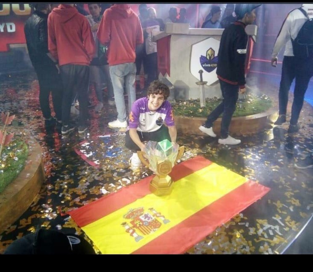 ** Une photo de Javi14 (drapeau espagnol) avec le trophée et des confettis avait