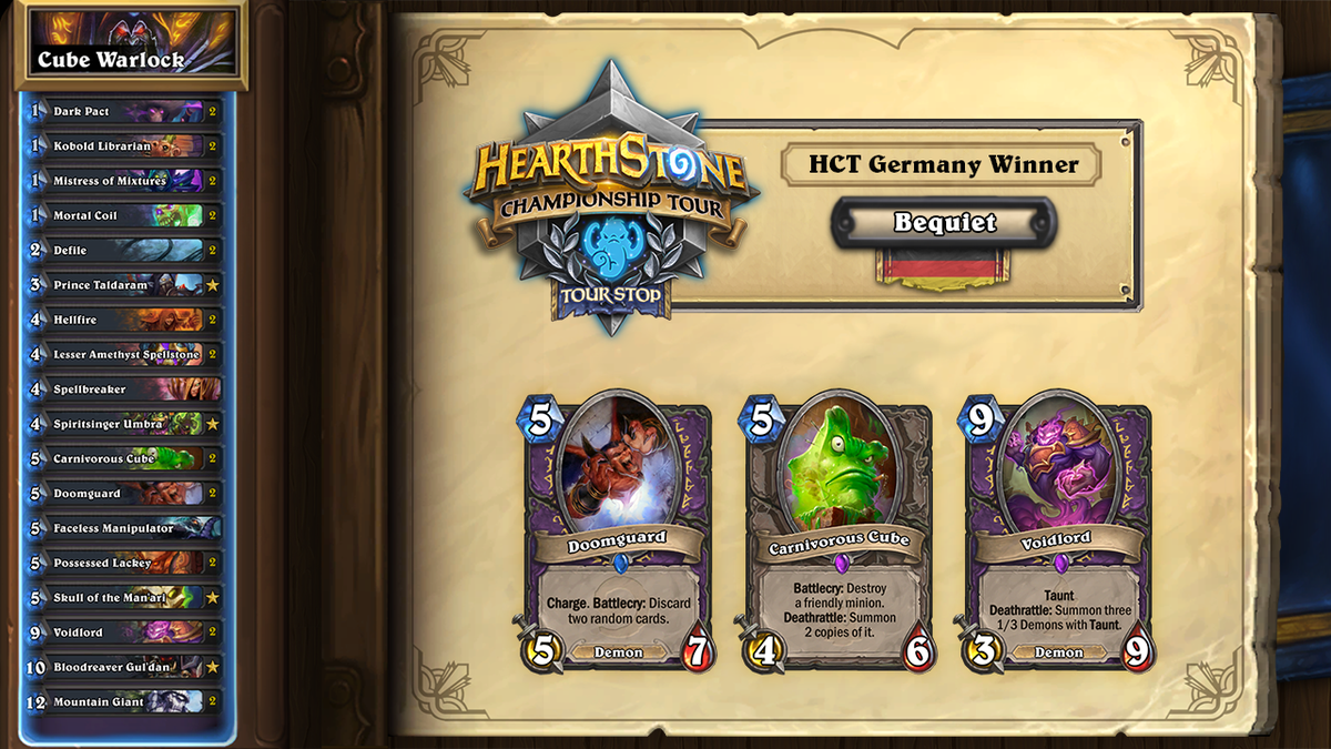Préférant le style du Démoniste Cube à celui des autres decks Contrôle, comme le déclare Bequiet, il n’est dont pas surprenant de le retorouver dans sa lineup. Deck populaire depuis un