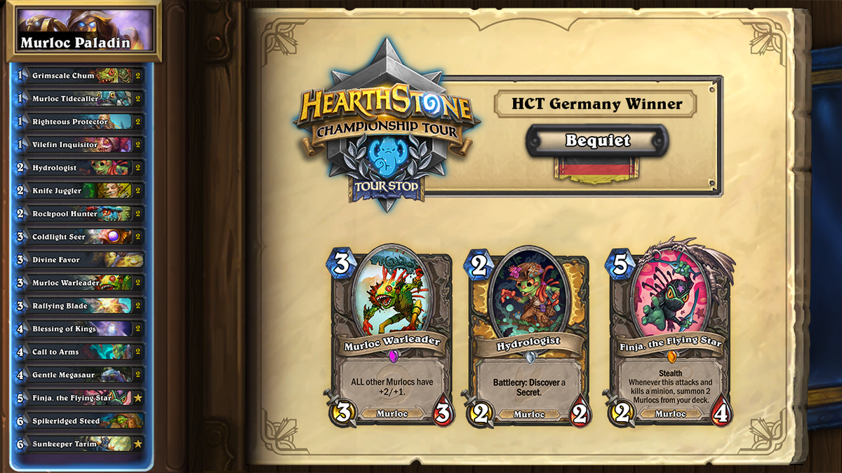 Decklist favorite de Bequiet, elle repose comme son nom l’indique sur l’utilisation de murlocs et des différentes synergies qui peuvent exister entre eux. De plus, certaines cartes Paladin comme