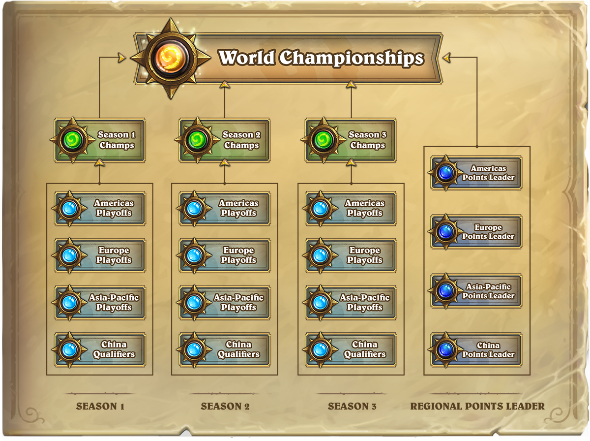 Les Hearthstone Challengers feront également leur apparition et qualifieront 8 joueurs par région pour les Playoffs. Les tournois en ligne seront maintenant