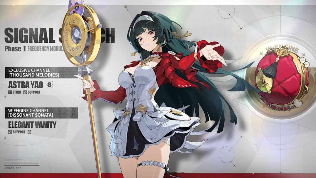Deux agents de rang S seront ajoutés avec le patch 1.5, la chanteuse Astra Yao et son agent et garde du corps, Évelyne. La première est de l’attribut Éther et de la spécialisation