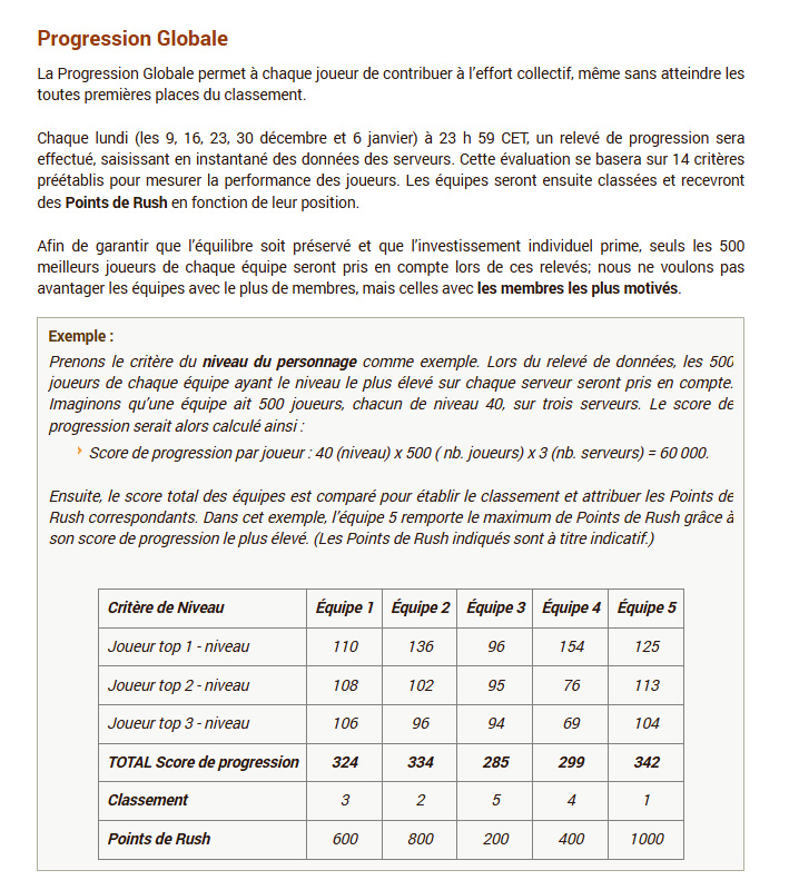 Cela signifie que, peu importe la taille d’une équipe, seuls les 500 meilleurs joueurs de chaque serveur contribuent au score global. Par exemple, si une équipe a beaucoup de joueurs concentrés