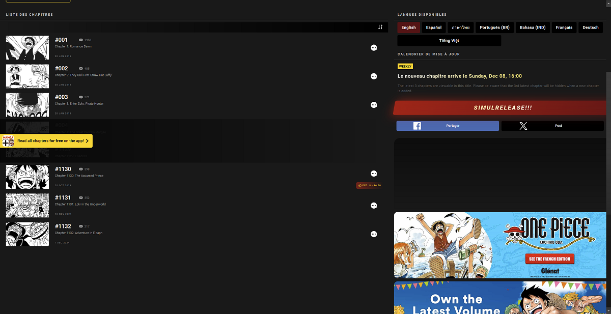 Pour l’instant, on ne connaît que les spoilers courts du chapitre 1133 de One Piece. Cependant, comme à leur habitude, les spoilers longs avec les images le jeudi 5 décembre