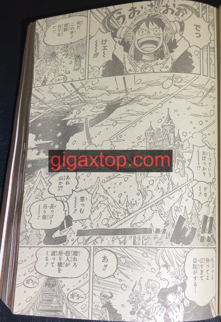 Luffy continue son exploration et fait une découverte impressionnante. Dans une scène digne des moments les plus épiques, il tombe sur un géant gigantesque, enchaîné au milieu de la neige : ce