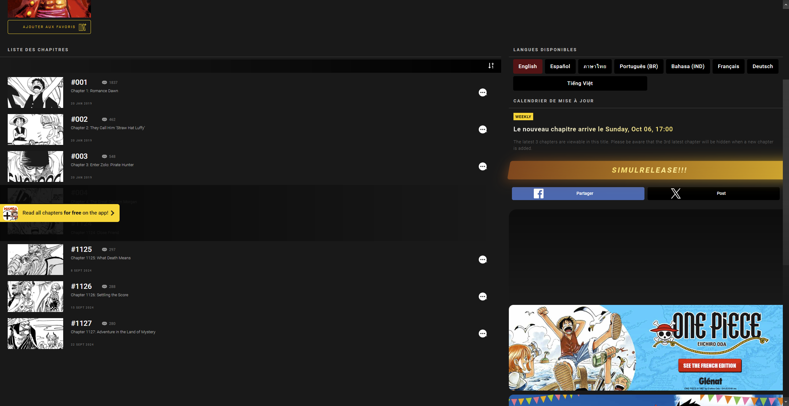 Officiellement, le chapitre de One Piece débarque le dimanche 6 octobre 2024 sur le site de l’éditeur Shueisha