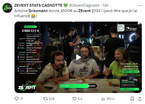 Au cours de l’événement, de nombreuses personnes ont donné de l’argent pour soutenir les associations, mais aussi certaines personnalités d’Internet, du sport ou de la musique, ainsi que des
