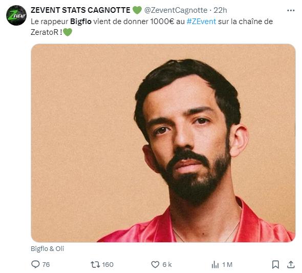 - Bigflo, cette année encore, le rappeur est passé au Z Event et en a profité pour faire un don de 1 000 euros sur la chaîne de Zerator. Il a refait un don de