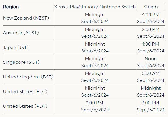 PS5, Xbox One, Xbox Series X|S et Nintendo Switch) et à 6 h sur PC via Steam. Il est à noter que l’heure qu’il faut prendre en compte est l’heure BST et ajouter une heure pour ce qui est du