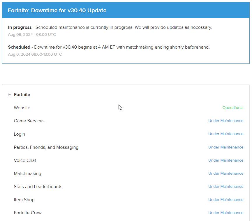 Heure de fin maintenance Fortnite 6 août 2024, quand se termine-t-elle pour la 30.40 ?