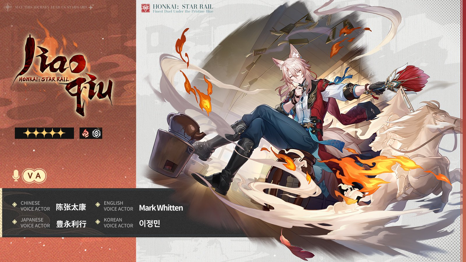 Pour ce qui est du second personnage 5 étoiles, il se nomme Jiaoqiu. Il est de type Feu et est de la catégorie La Nihilité. Tout comme pour