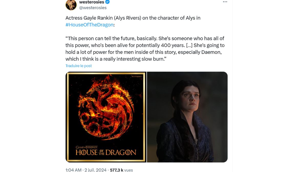 n’avons pas fini de voir l’étendu des pouvoirs de Alys dans les prochains épisodes. La relation qu’elle entretiendra avec Daemon devrait également être déterminante pour son avenir