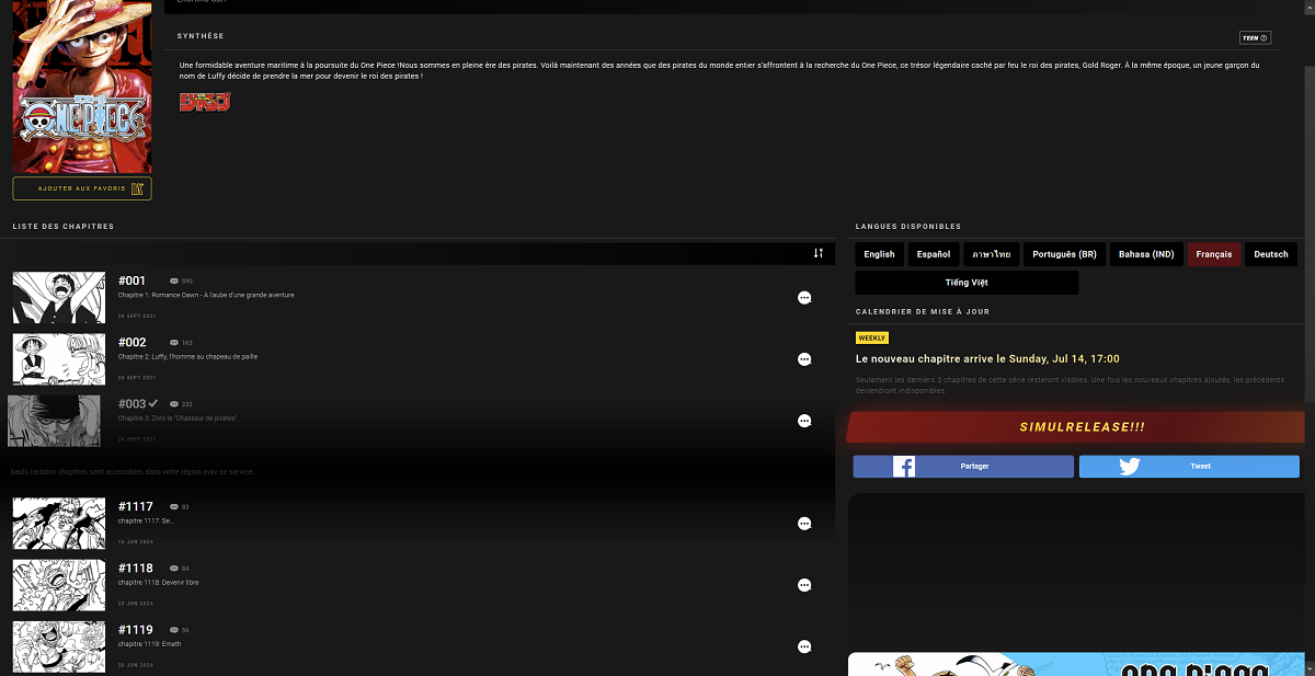 Officiellement, le chapitre de One Piece débarque le dimanche 14 juillet 2024 sur le site de l’éditeur Shueisha