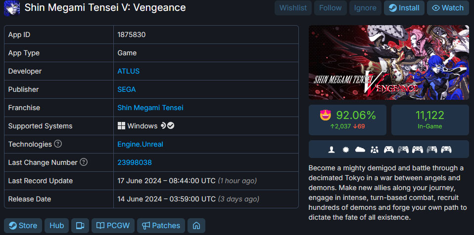 Le succès de Shin Megami Tensei V: Vengeance sur Steam