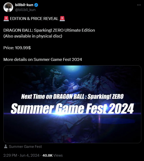 Dragon Ball: Sparking Zero sera officiellement présenté au Summer Game Fest 2024, prévu pour le 7 juin. Cet événement sera l’occasion pour Bandai Namco de dévoiler plus de détails sur le jeu, y