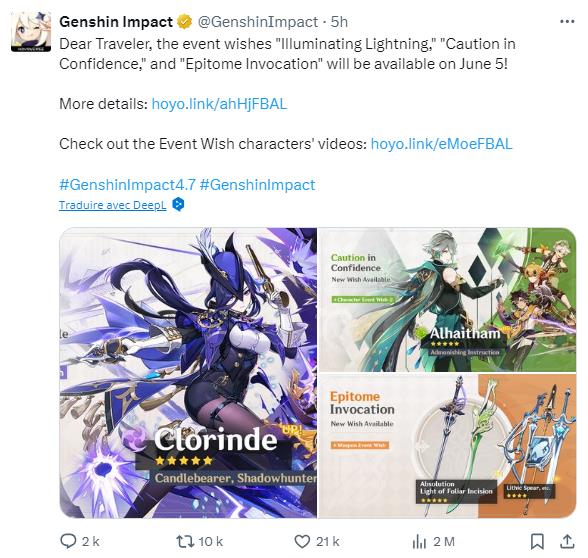 Quelles sont les bannières du patch 4.7 sur Genshin Impact ?
