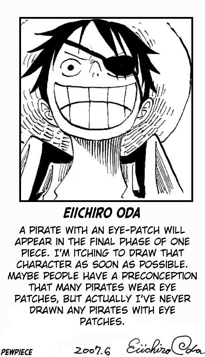 Eiichiro Oda a dévoilé qu’un pirate avec un cache-œil apparaitra dans la phase finale de One Piece. Voici son communiqué complet :