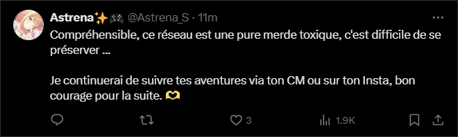 plateforme. La priorité est de prendre soin de sa santé mentale. La réaction de la communauté est mitigée. Alors que certains veulent que JDG reste sur Twitter, une partie du public comprend