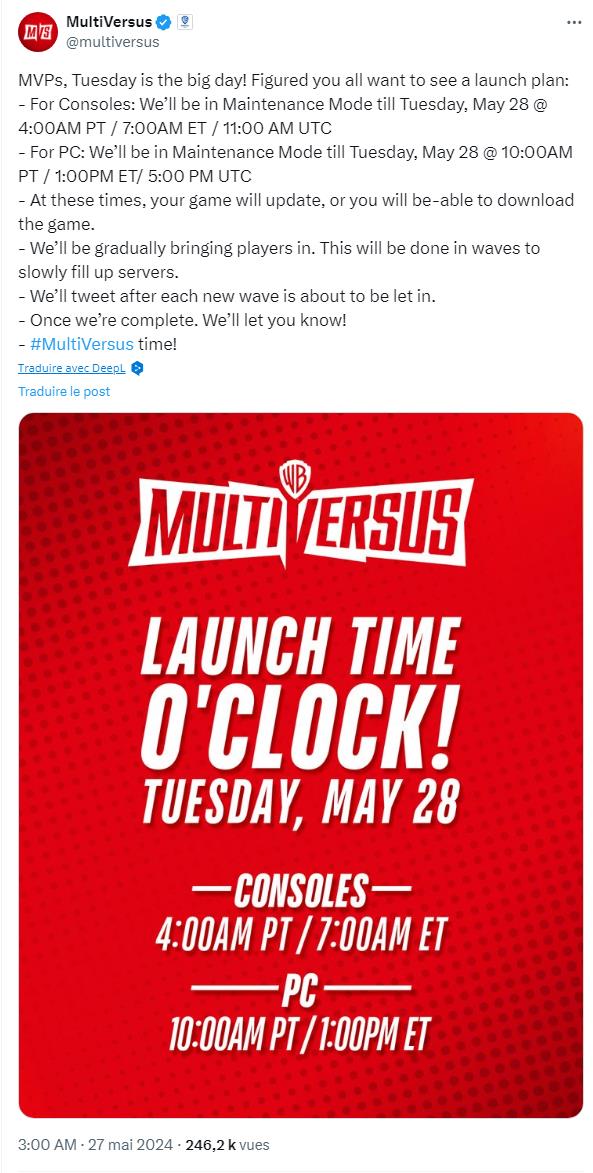 Si vous souhaitez savoir à quelle heure sort MultiVersus, eh bien, la réponse a été donnée directement sur le compte Twitter officiel de MultiVersus. Comme vous allez pouvoir le