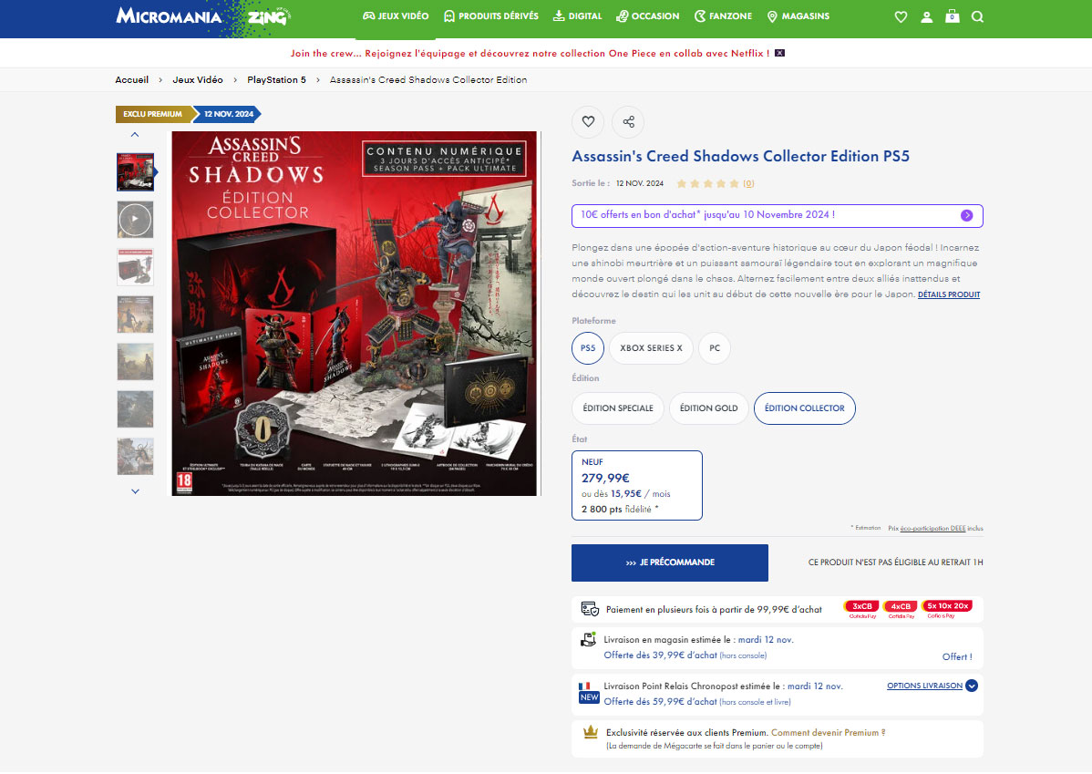 L’édition collector est actuellement disponible en précommande sur Micromania pour la somme de 279,99 €.