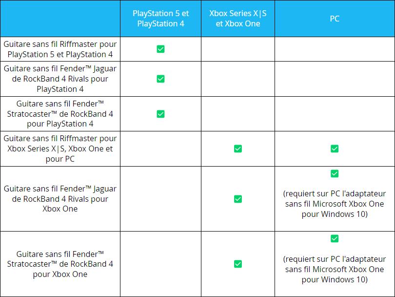 la basse pro sur la scène principale sur PlayStation, Xbox et PC ! Consultez le tableau ci-dessous pour savoir si votre manette est compatible au lancement de la