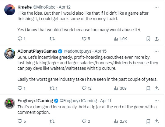 aux joueurs de donner un pourboire aux développeurs après avoir terminé un jeu. Une suggestion qui, à première vue, peut sembler surprenante, mais qui soulève des questions pertinentes.