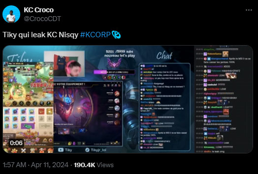 C’est dans ce contexte qu’une potentielle fuite d’information a mis le feu aux poudres. Lors d’un live, Tiky, laisse échapper une vidéo où l’on entendrait Nisqy prononcer à plusieurs reprises « KC