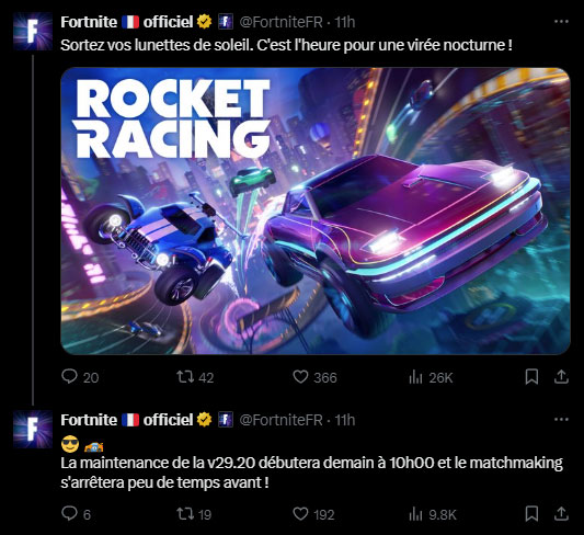 matinée ou au plus tard en début d’après-midi. Nous avons eu l’information de la part d’Epic Games, la maintenance débutera à 10h du matin en France.