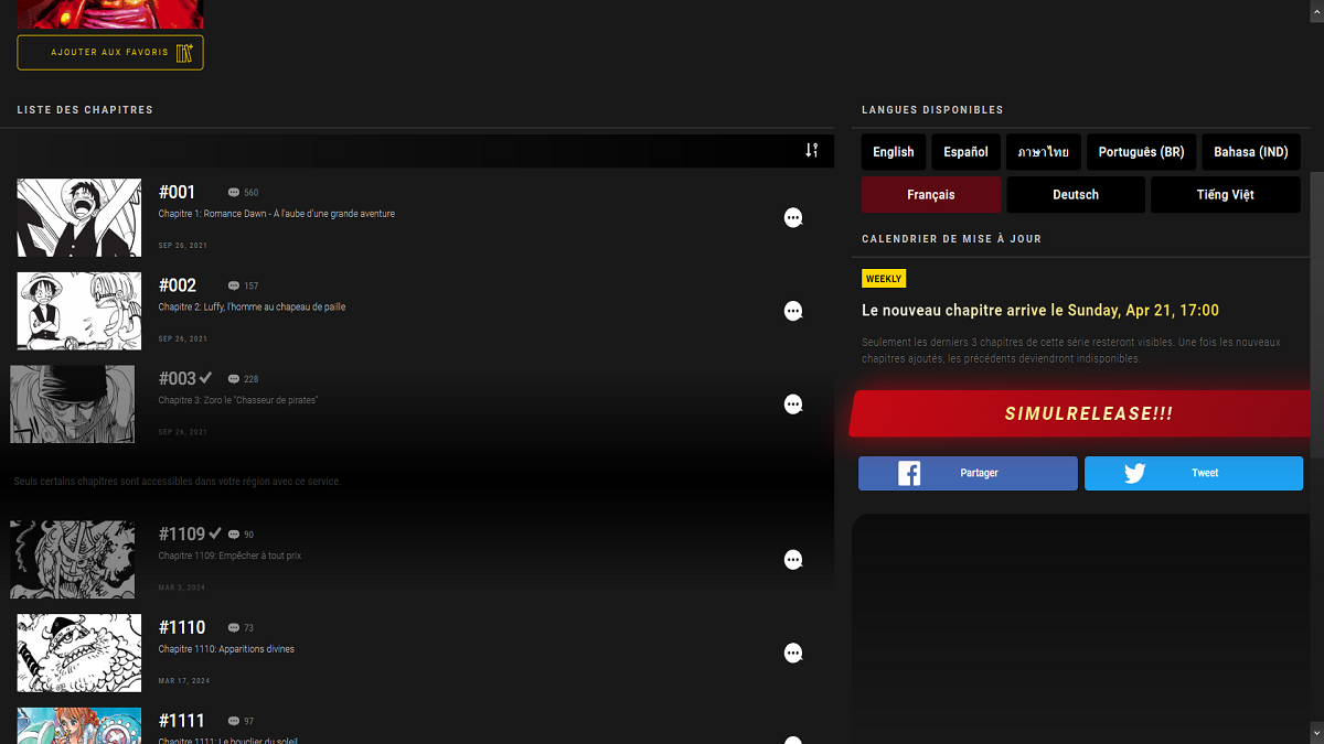 Officiellement, le chapitre de One Piece débarque le dimanche 21 avril 2024 sur le site de l’éditeur Shueisha
